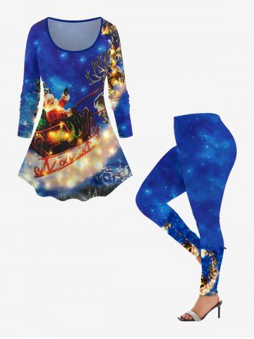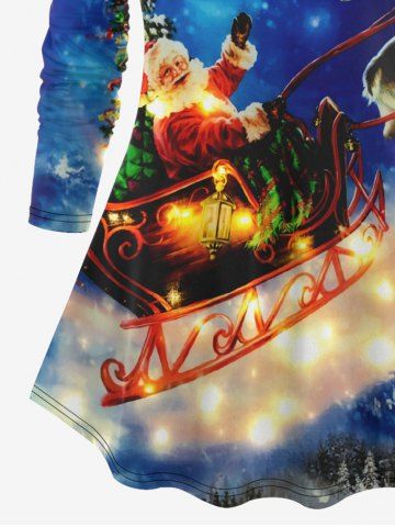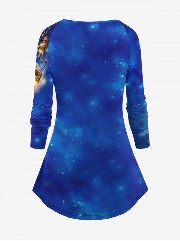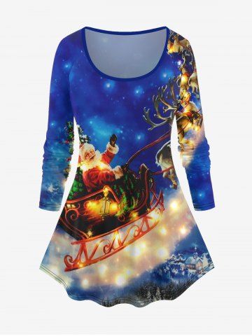 T-shirt Père Noël Traîneau et Cerf Imprimés de Grande Taille à Paillettes - Bleu Ciel - Bleu Ciel
