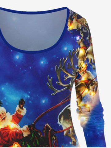 Tops > T-shirt Père Noël Traîneau et Cerf Imprimés de Grande Taille à Paillettes
