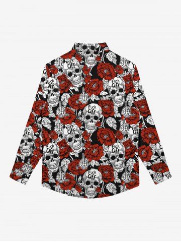 Chemise Gothique Fleur Crâne Squelette Imprimés Boutonnée pour Homme - Rouge - Rouge