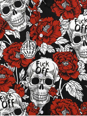 Chemise Gothique Fleur Crâne Squelette Imprimés Boutonnée pour Homme - Rouge - Rouge