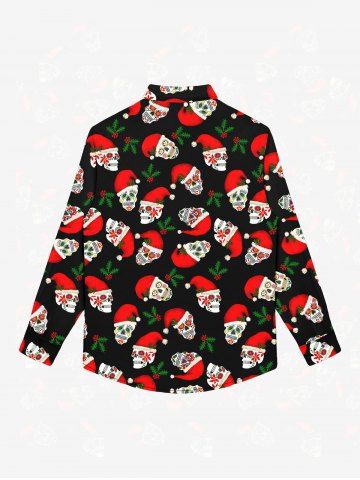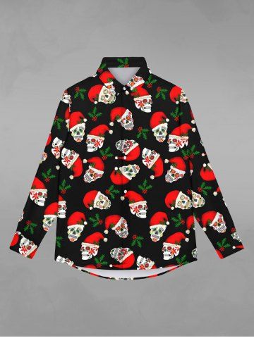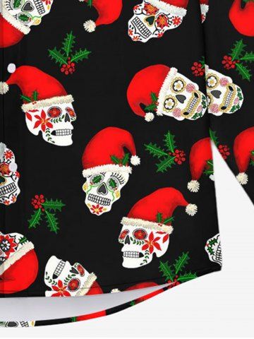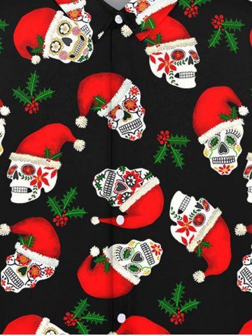 Chemise Gothique Imprimé Crâne et Chapeau de Noël avec Boutons pour Homme - Noir - Noir