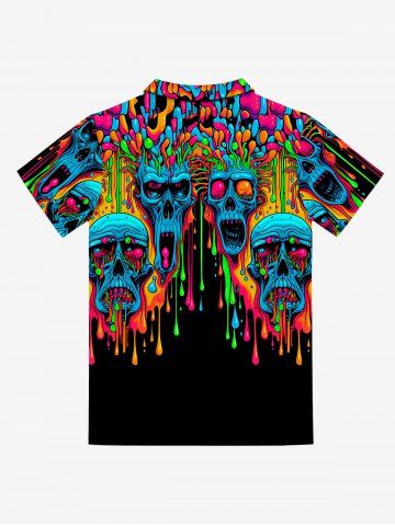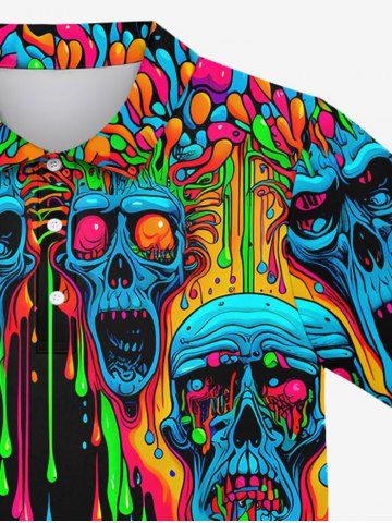 Gothic Turn-down Collar Colorful Paint Drop Skulls Print Buttons Polo Shirt For Men - Noir - Noir