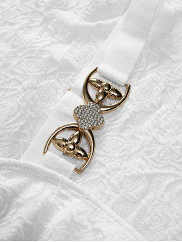 Rose Jacquard Ruched Twist Asymmetrical Buckles Tank Top - Blanc - Blanc