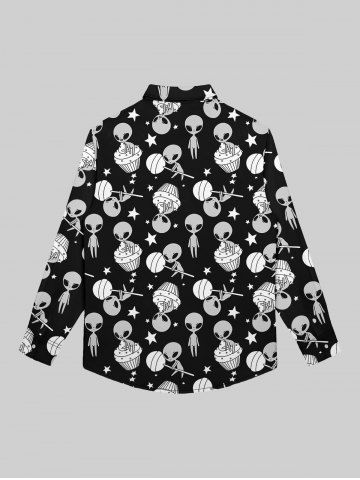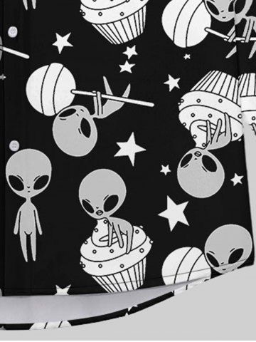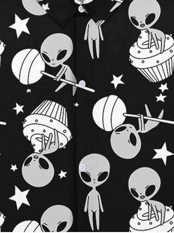T-shirt Imprimé Crâne Drapé à Col Rabattu avec Boutons pour Homme - Noir - Noir
