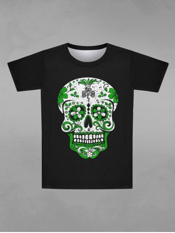 Tops> T-shirt Vintage Fleur Crâne Imprimée à Manches Courtes