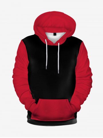 Sweat à Capuche Bicolore avec Poche en Avant à Manches Longues - Rouge - Rouge