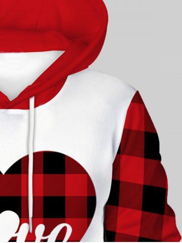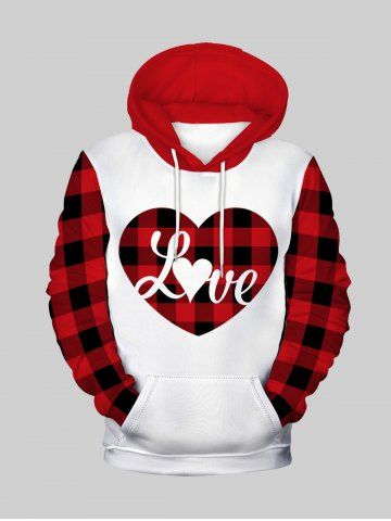 Sweat à Capuche Homme à Motif Cœur et de Noël avec Poche en Avant en Flocage Doublé Pour La Saint-Valentin - Rouge - Rouge