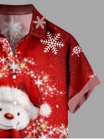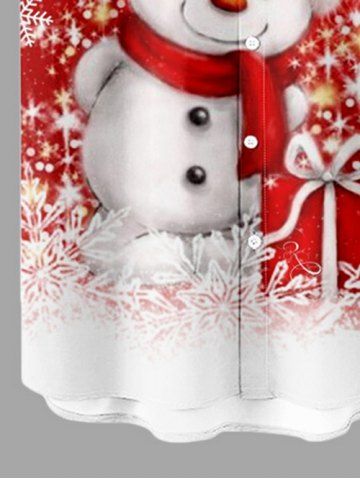 Chemise 3D Bonhomme de Neige Flocon de Neige et Boîte à Brillant Imprimé en Blocs de Couleurs Grande Taille avec Boutons pour Hommes - Rouge - Rouge