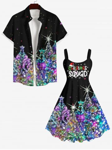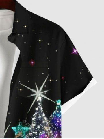 Chemise 3D Etoile Sapin de Noël Imprimés Grande Taille avec Poche à Paillettes - Noir - Noir