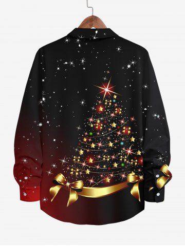 Chemise 3D Etoile Sapin de Noël Imprimés Grande Taille avec Poche en Avant à Manches Longues - Noir - Noir