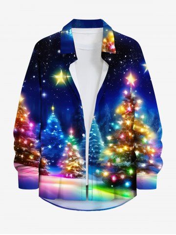 Chemise 3D Etoile Sapin de Noël Lumière et Galaxie Imprimés Grande Taille avec Boutons à Paillettes - Multi-a - L