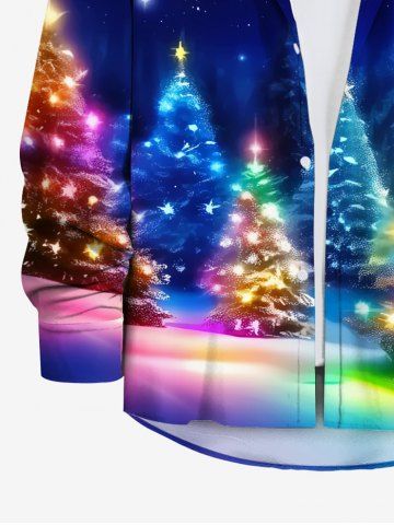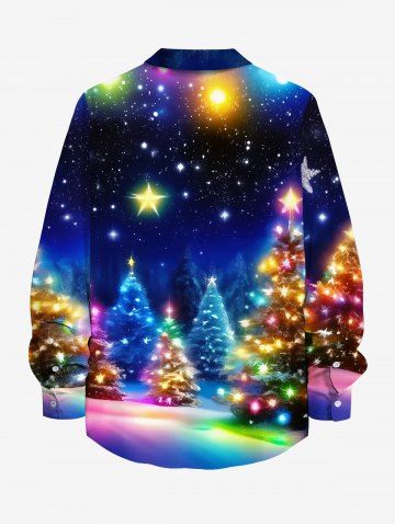 Chemise 3D Etoile Sapin de Noël Lumière et Galaxie Imprimés Grande Taille avec Boutons à Paillettes - Multi-a - Xl