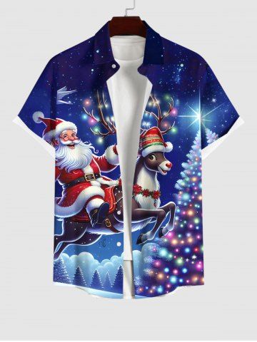 Chemise à Boutons avec Pendentif Sapin Élans Père Noël et Galaxie Grande-Taille pour Hommes - Multi-a - M
