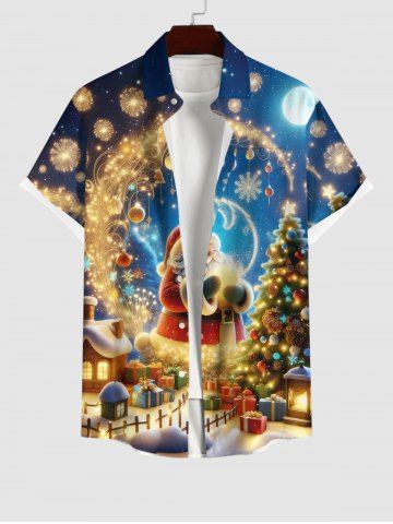Vêtements Homme > Chemise à Boutons avec Poche Imprimé Feu D'Artifice et Père Noël Grande Taille pour Hommes