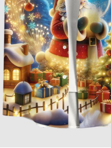 Chemise à Boutons avec Poche Imprimé Feu D'Artifice et Père Noël Grande Taille pour Hommes - Multi-a - L