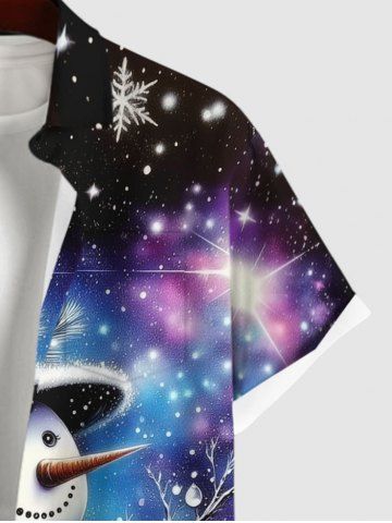 Chemise à Boutons avec Pochette Imprimé Bonhomme de Neige de Noël Illuminé et Galaxie Grande Taille pour Hommes - Noir - Noir
