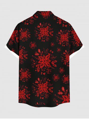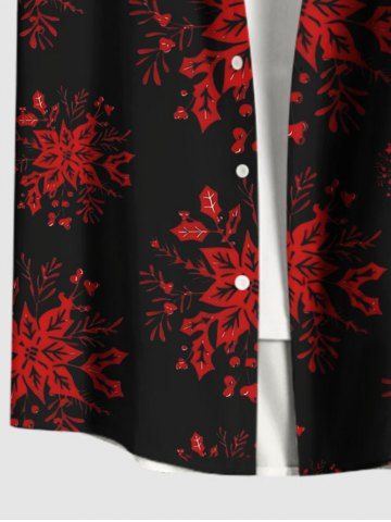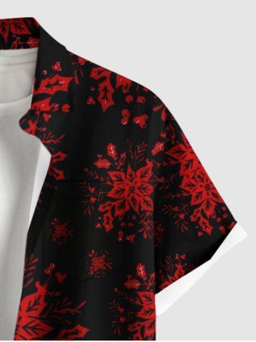 Chemise à boutons et poche pour homme, grande taille, imprimé houx, fruits et flocons de neige, pour Noël - Noir - Noir