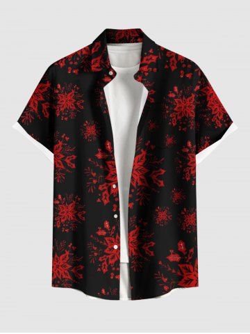 Vêtements Homme> Chemise à boutons et poche pour homme, grande taille, imprimé houx, fruits et flocons de neige, pour Noël