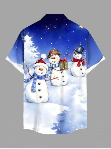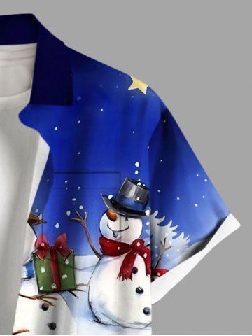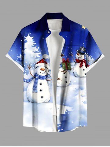 Chemise à boutons et poche pour homme, grande taille, motif sapin de Noël, bonhomme de neige et flocons de neige - Bleu Ciel - Bleu Ciel