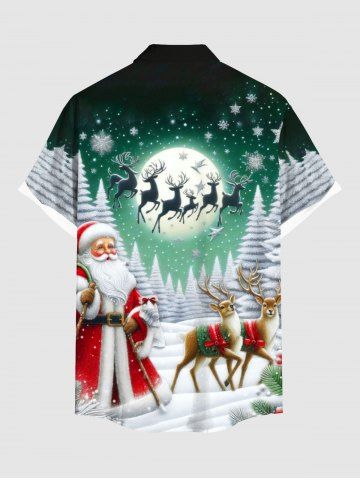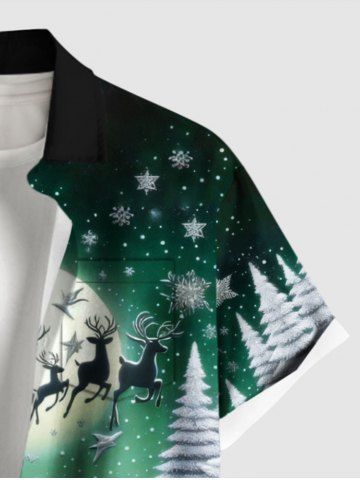 Chemise à boutons et poche pour homme, grande taille, motif sapin de Noël, Père Noël, renne et flocons de neige - Vert - Vert