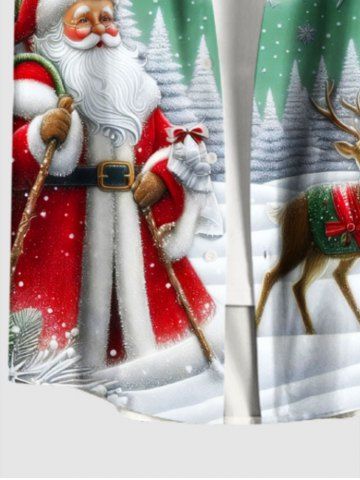 Vêtements Homme> Chemise à boutons et poche pour homme, grande taille, motif sapin de Noël, Père Noël, renne et flocons de neige