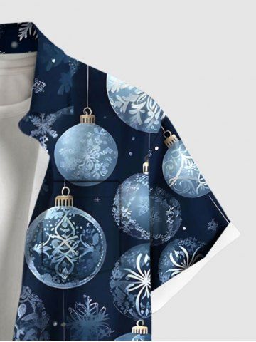 Chemise à boutons et poches pour homme, grande taille, imprimé de boules de Noël et de flocons de neige - Bleu - Bleu