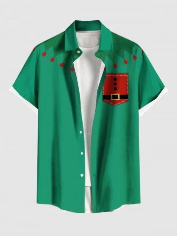 Chemise à boutons et poches pour homme, grande taille, imprimé lutin de Noël et Père Noël. - Vert - Vert