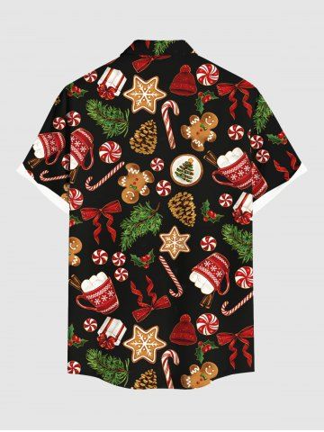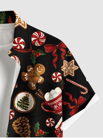 Chemise à boutons et poches pour homme, grande taille, motif pain d'épice, étoile, nœud papillon et flocons de neige. - Noir - Noir