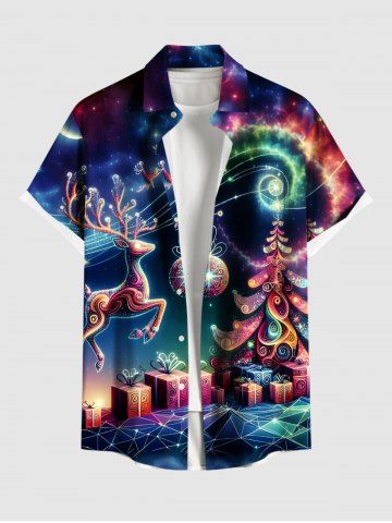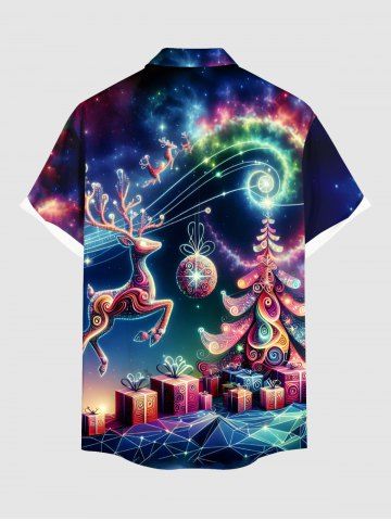Chemise à boutons grande taille pour homme, imprimée d'un sapin de Noël coloré, d'un élan et d'une boule de Noël, avec poche boutonnée et motif galaxie. - Multi-a - 2xl