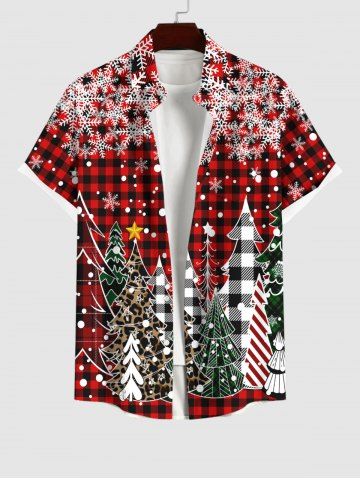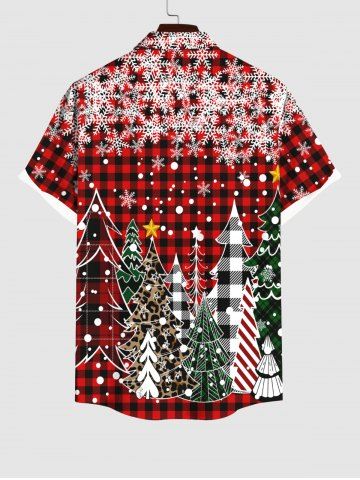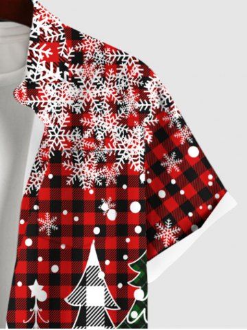 Chemise à Carreaux Etoile Flocon de Neige et Sapin de Noël Imprimés Grande Taille avec Poche pour Homme - Rouge - Rouge