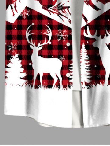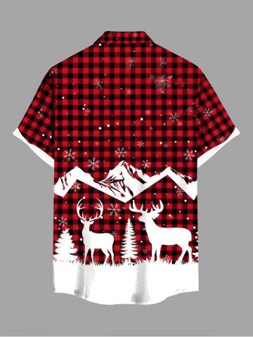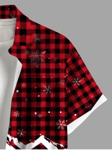 Vêtements Homme > Chemise à carreaux grande taille avec imprimé sapin de Noël, élan, flocon de neige, montagne, boutons et poche pour homme