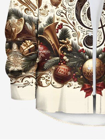 Vêtements Homme > Chemise à manches longues boutonnée avec imprimé de boules de Noël et symboles musicaux, grande taille, pour hommes