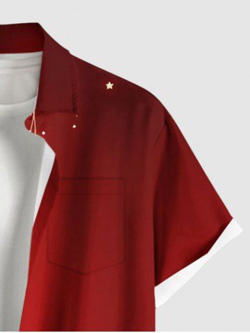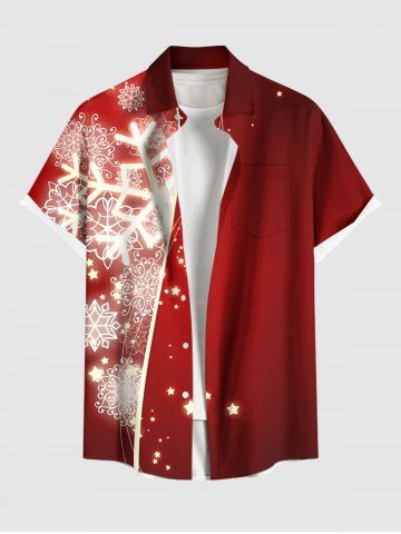 Chemise à poches boutonnées grande taille pour homme, imprimé flocons de neige et étoiles de Noël - Rouge - Rouge