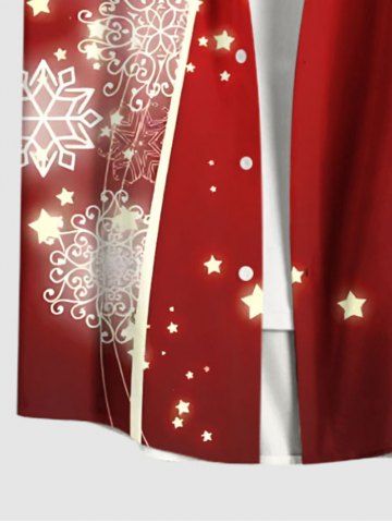 Vêtements Homme> Chemise à poches boutonnées grande taille pour homme, imprimé flocons de neige et étoiles de Noël