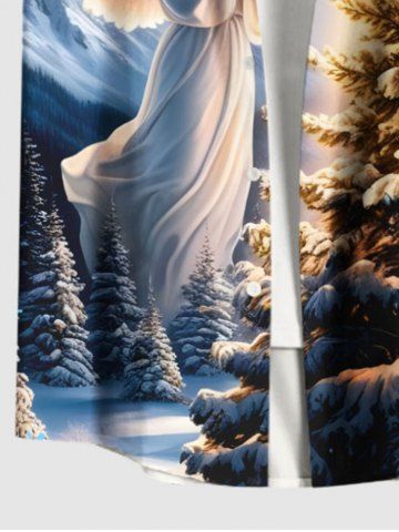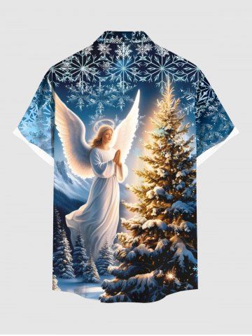 Vêtements Homme> Chemise à poches boutonnées grande taille pour homme, imprimée sapin de Noël, flocons de neige et anges
