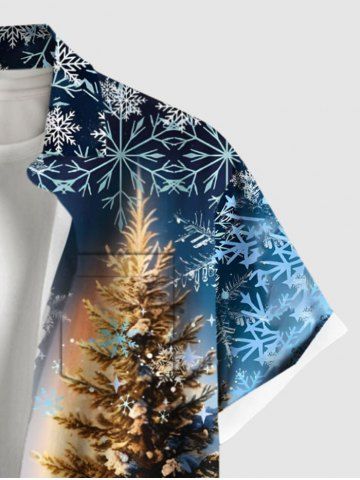 Chemise à poches boutonnées grande taille pour homme, imprimée sapin de Noël, flocons de neige et anges - Bleu Marine - Bleu Marin