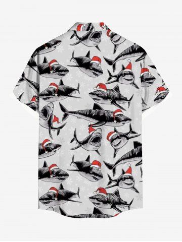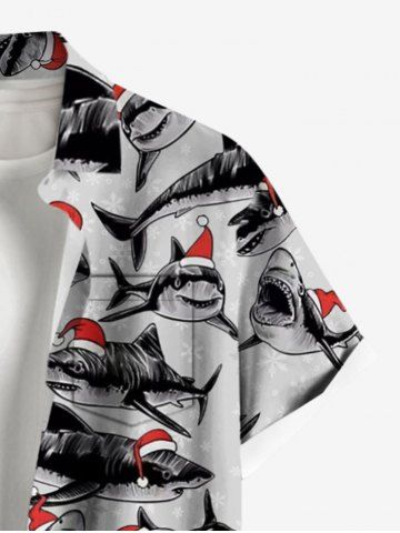 Chemise à poches et boutons imprimé requins grande taille pour homme - Gris Clair - Gris Clair