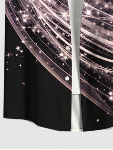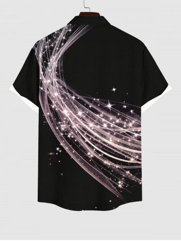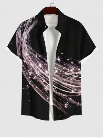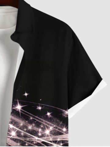 Chemise à poches et boutons imprimés 3D pailletés avec étoiles de Noël grandes tailles pour hommes - Noir - Noir