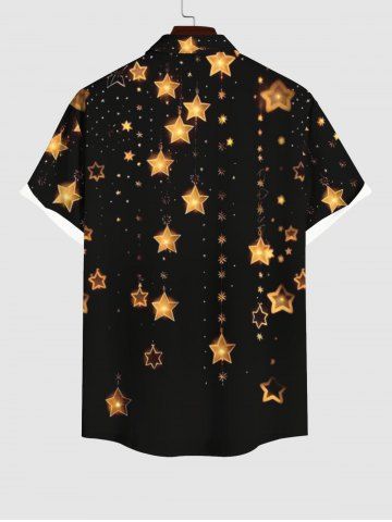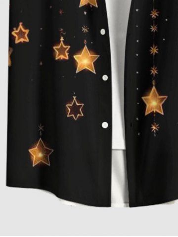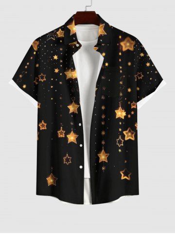 Chemise Boutonnée Etoile Brillante Imprimée avec Poche de Noël de Grande Taille pour Homme - Noir - Noir