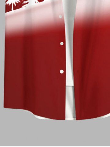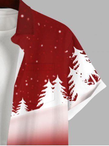 Chemise Boutonnée Ombré Sapin de Noël et Flocon de Neige Imprimés Grande Taille avec Poche - Rouge - Rouge
