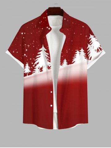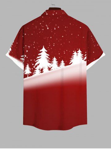 Chemise Boutonnée Ombré Sapin de Noël et Flocon de Neige Imprimés Grande Taille avec Poche - Rouge - Rouge