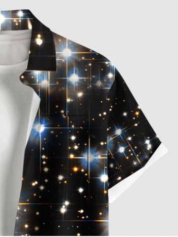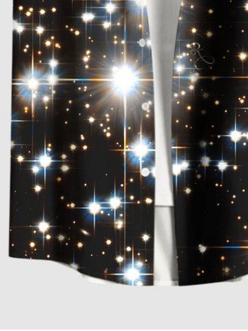 Chemise de Noël 3D Etoile Galaxie Imprimée de Grande Taille avec Poche à Paillettes avec Boutons - Noir - Noir