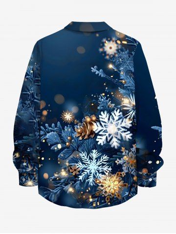 Chemise de Noël 3D Fleur et Flocon de Neige Imprimés de Grande Taille avec Poche à Manches Longues - Bleu Profond - Xl