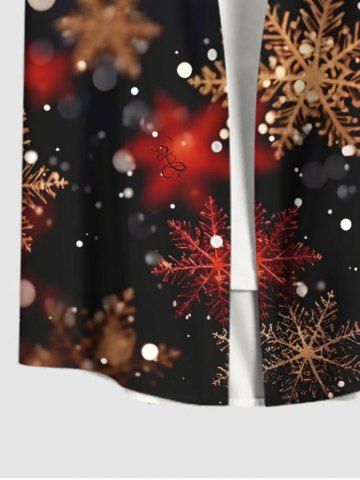 Chemise de Noël 3D Flocon de Neige Imprimé de Grande Taille avec Poche à Paillettes - Noir - Noir