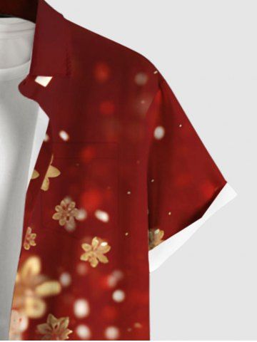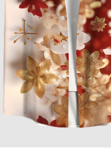 Chemise de Noël Boutonnée Fleurie Dorée Imprimée de Grande Taille avec Poche - Multi-a - 3xl