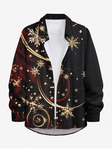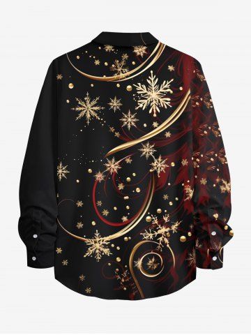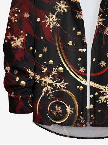 Vêtements Homme> Chemise de Noël Flocon de Neige avec Ruban Doré Imprimé de Grande Taille à Manches Longues