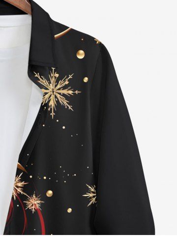 Chemise de Noël Flocon de Neige avec Ruban Doré Imprimé de Grande Taille à Manches Longues - Noir - Noir