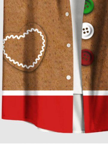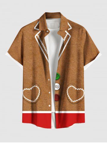 Vêtements Homme> Chemise de Noël grande taille à boutons colorés et cœurs en pain d'épices pour homme