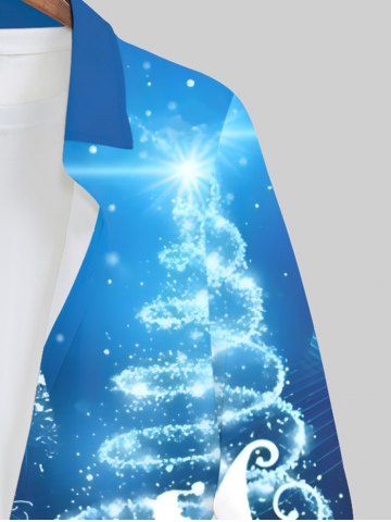 Chemise en Blocs de Couleurs 3D Sapin de Noël Imprimé avec Poches Grande Taille à Paillettes - Bleu Ciel - Bleu Ciel