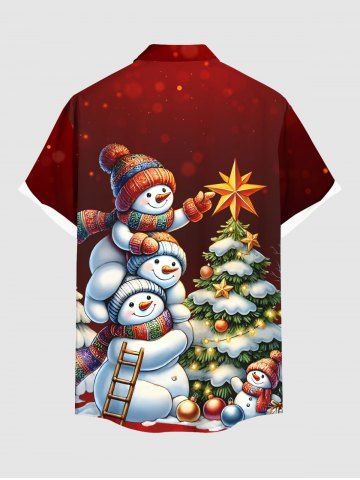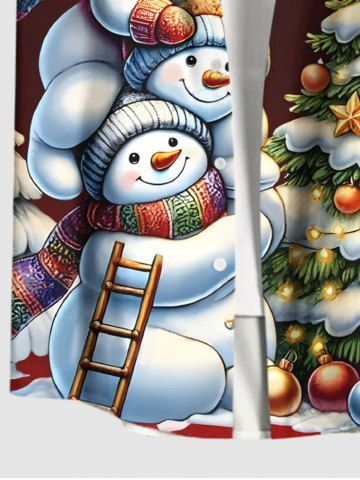 Vêtements Homme> Chemise grande taille à boutons et poches pour homme, motif sapin de Noël, boules lumineuses, étoiles, bonhomme de neige